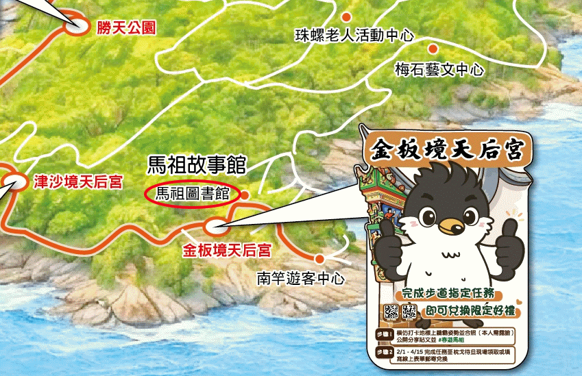 再來,南竿金板境沒有圖書館,地圖中的「馬祖圖書館」應該是馬祖日報社的「馬祖故事館」。這也是明顯的錯誤,竟然也印在海報、放在網站,貽笑大方。