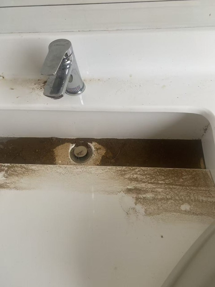 近日發現福澳運動場公廁有民眾在洗手台上沖洗泥沙,造成排水管嚴重賭塞,該公廁2月份剛完成修建驗收投入使用.