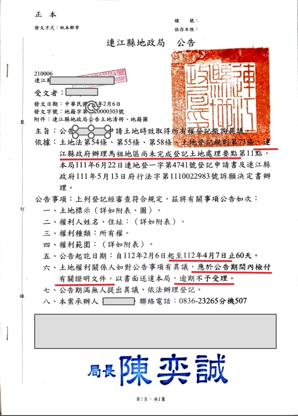 土地公告載明逾期不予受理