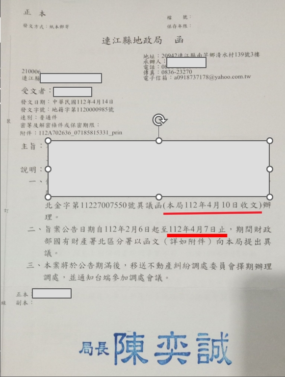 地政局收文載明112/4/10超過3天