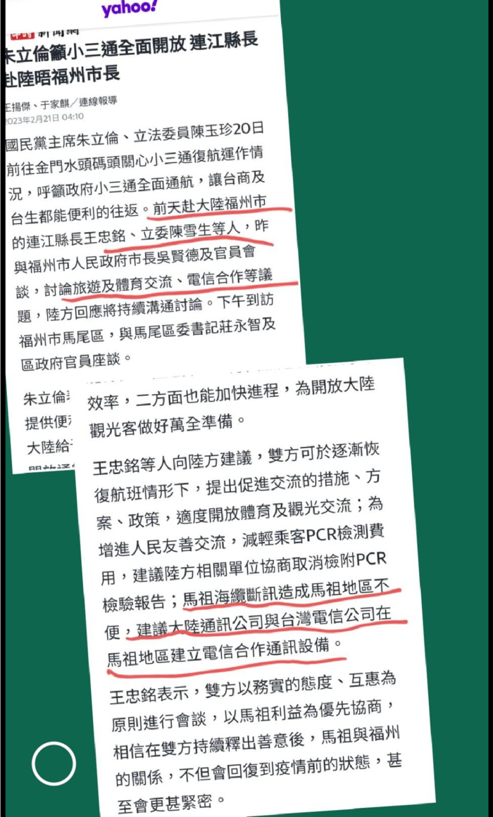 附上藍媒的報導截圖,免得有人聽了李主委的指控,還真有人會相信陳雪生委員會「失職」到去大陸只提新四通,不會理這近期馬祖最大的「網災」。