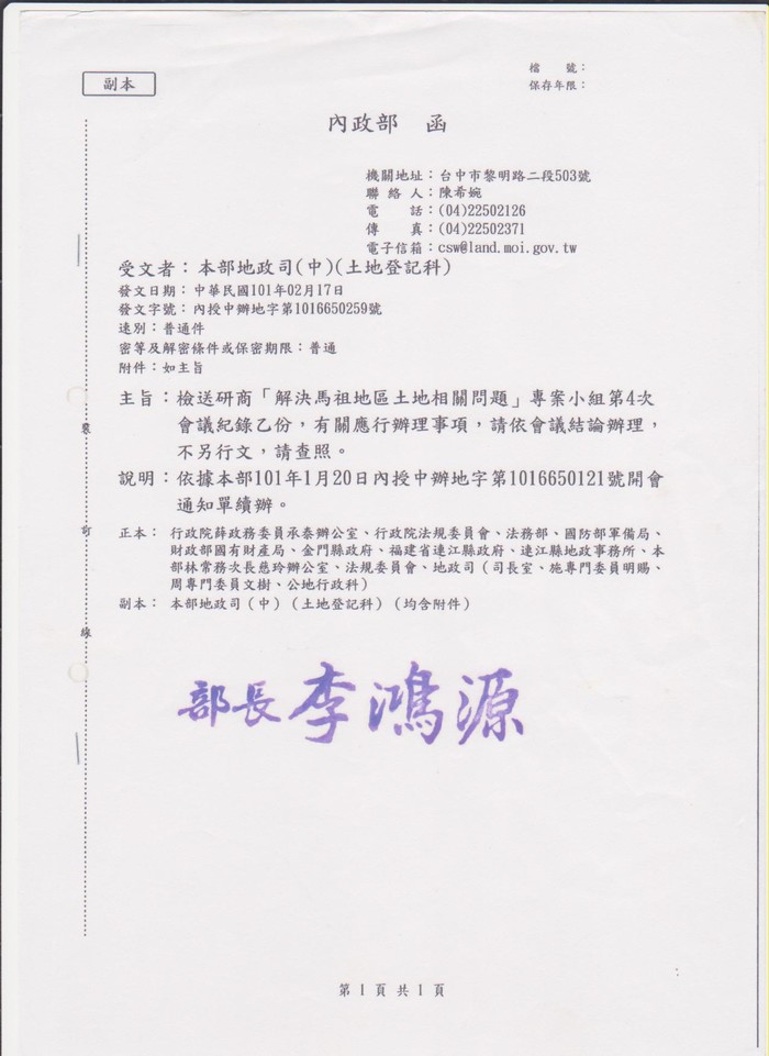 法官依據法律獨立審判,內政部101年2月9日召開「解決馬祖地區土地相關問題」第四次專案小組會議決議,到了法院成了廢紙一張,這就是鄉親心裡的痛。