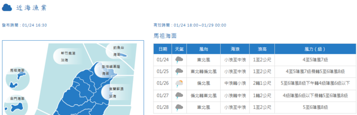 因海象不佳,為旅客及船舶安全考量01/25-01/26東引航班停航。