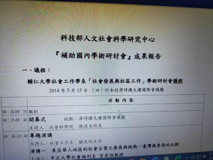 他唸的是該校健康照顧社會工作系,要用2年時間的週六與週日9:00-18:00,