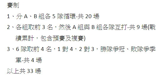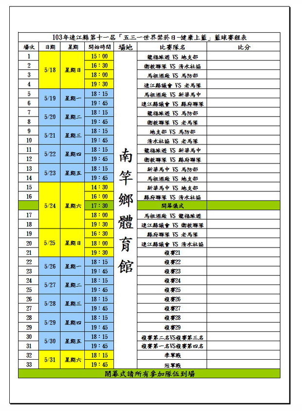 5/18-5/31「531健康上籃」賽程 --閱讀人次 : 1522 本屆賽事計有10隊參加,如下: