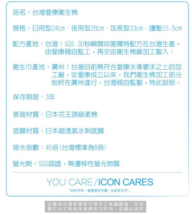 "愛康衛生棉"目前總共有4種產品,簡單夠力!