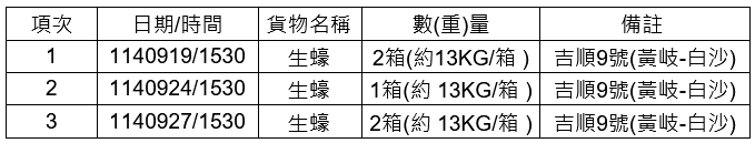 馬祖海關公告認領小三通北竿入境旅客應退運遺失貨物,自公告日(114年9月29日 )起滿3天,期間無人申請認領,海關將以放棄貨物處理並擇期辦理銷毀。