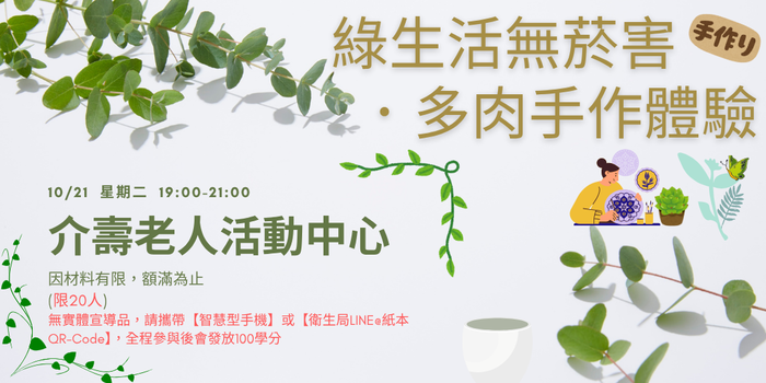 綠生活無菸害多肉輕質土手作體驗(截止)