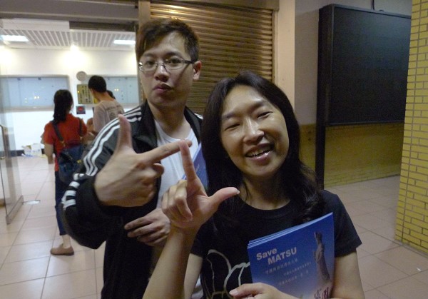 反博弈義工曹祥官夫婦、劉志芬、曹雅評等在山隴介壽堂發傳單