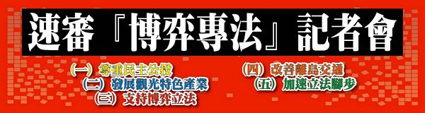 尊重民主公投,期待立院「博弈專法」加速誕生記者會新聞稿 --閱讀人次 : 2339 尊重民主公投,期待立院「博弈專法」加速誕生記者會新聞稿