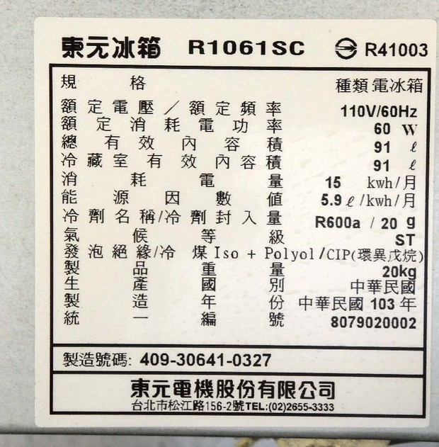 東元TECO R1068SC 91L小鮮綠單門冰箱