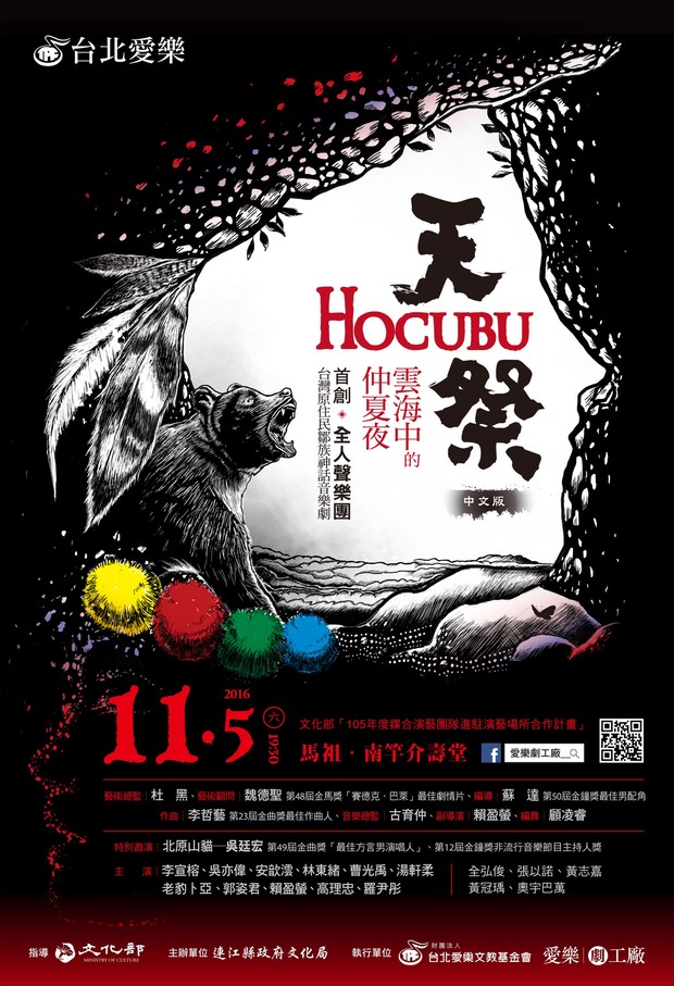 雲海中的仲夏夜-天祭音樂劇11/5介壽堂 --閱讀人次 : 597 雲海中的仲夏夜-天祭》音樂劇11/5介壽堂盛大演出轉貼馬報【記者曹重偉報導】鄒族傳說、馬祖再現!縣府文化局表示,由愛樂劇工廠將鄒族傳說編寫成的音樂劇《雲海中的仲夏夜-天祭HOCUBU》,將於11月5日晚間首次在馬祖盛大演出,也希望串連前一天4日的《海島歌謠音樂會》,讓參加今年馬祖馬拉松的選手及親友們能安排更豐富的行程;縣府熱情邀請來自國內外的選手、遊客及在地鄉親,當晚7時30分踴躍前往介壽堂欣賞這齣難得一見的史詩級演出。