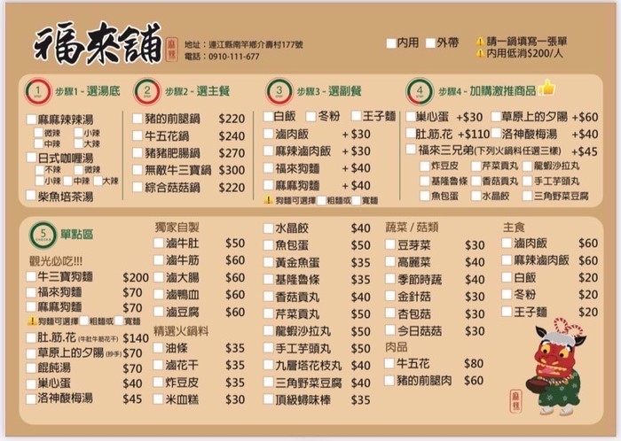 訂位訂餐:0910-111-677(營業時間才有接電話)