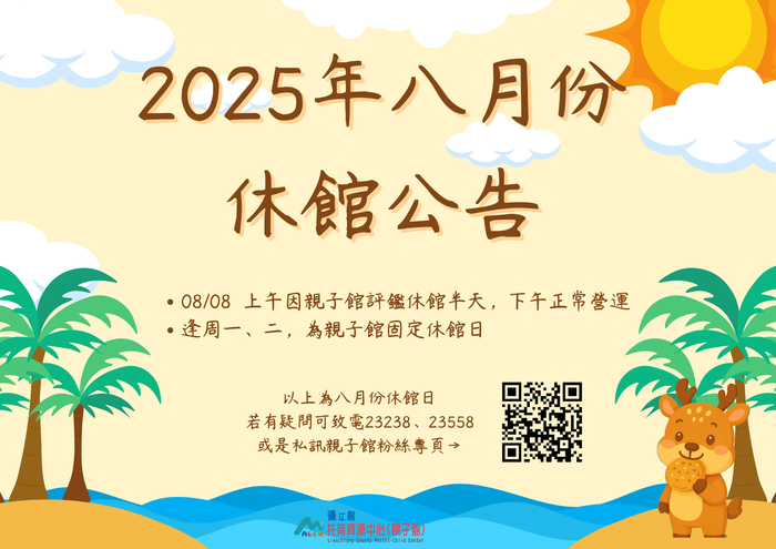 另外有休館公告以及親子館外展的時程表,