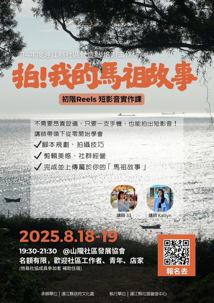 Reels短影音初階實作課報名中 --閱讀人次 : 1104 🎬【拍!我的馬祖故事】