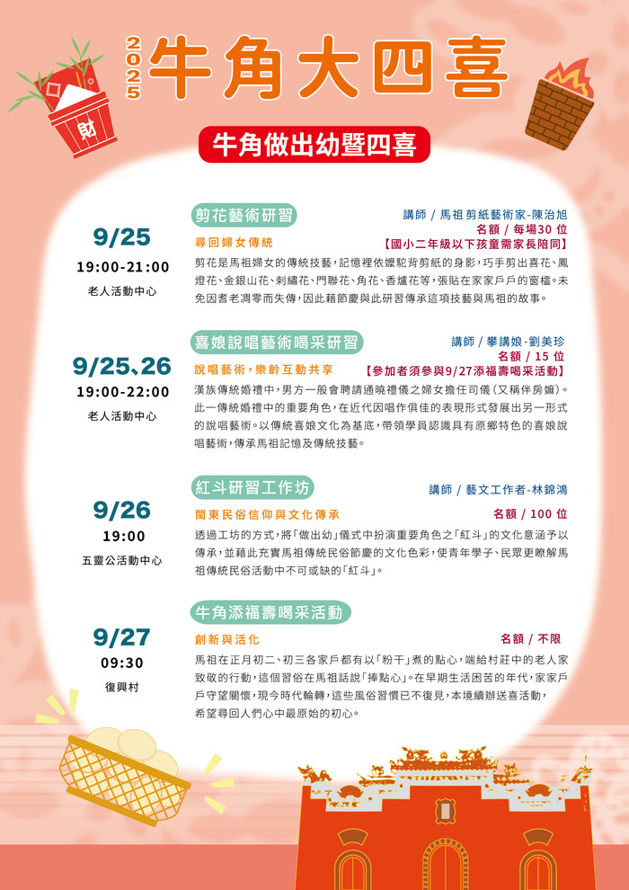 參與課程者,需配合參加9月27日早上9點 牛角做出幼-添福壽喝采活動