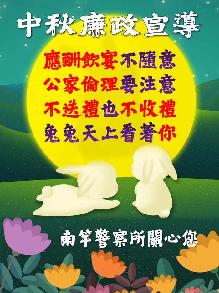 南竿警察所關心您,並預祝您中秋佳節愉快、行車平安。💕
