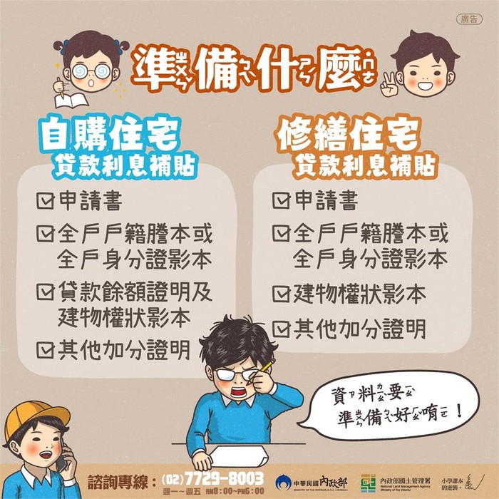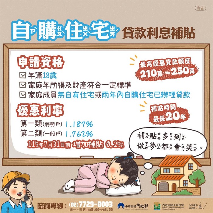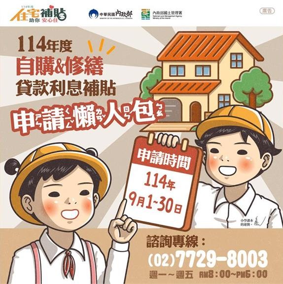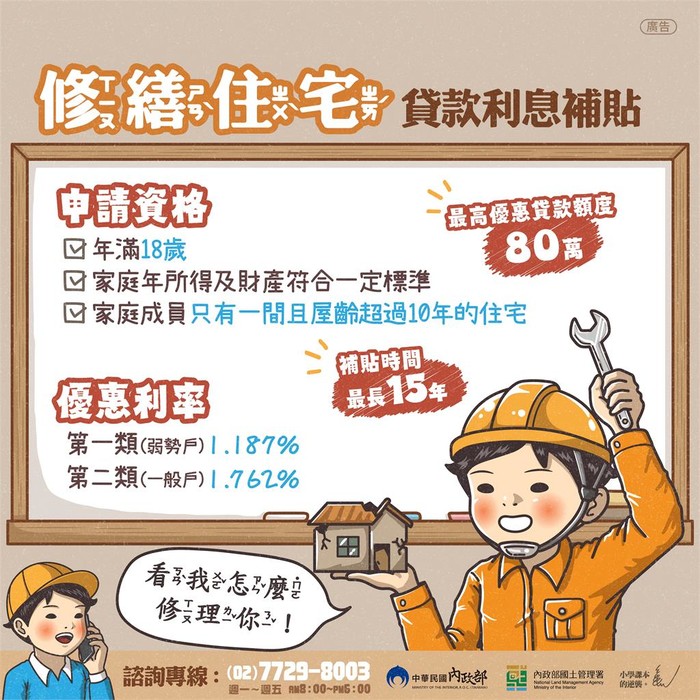 連江縣分配名額:自購住宅貸款利息補貼1名、修繕住宅貸款利息補貼3名
