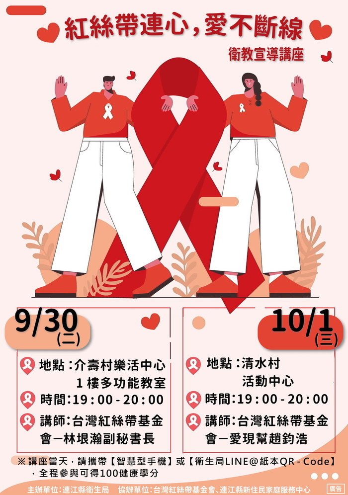 9/30-10/1紅絲帶連心愛不斷線 --閱讀人次 : 687 今年連江縣衛生局持續與台灣紅絲帶基金會攜手合作