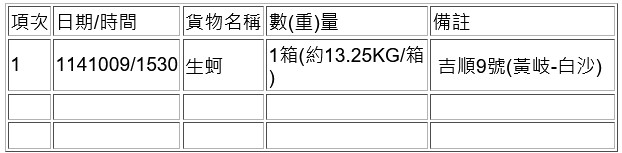 小三通北竿入境旅客應退運遺失貨物認領公告(入境日期:10月9日)