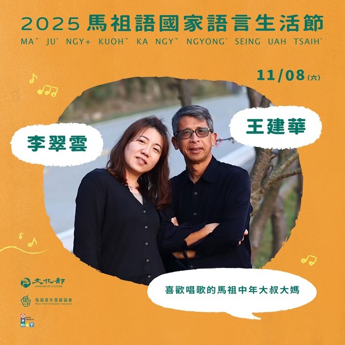 2025馬祖語國家語言生活節表演卡司 --閱讀人次 : 756 馬祖語國家語言生活節最後一組表演嘉賓介紹,就是來自馬祖的夫妻 #王建華 和 #李翠雲!