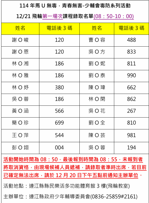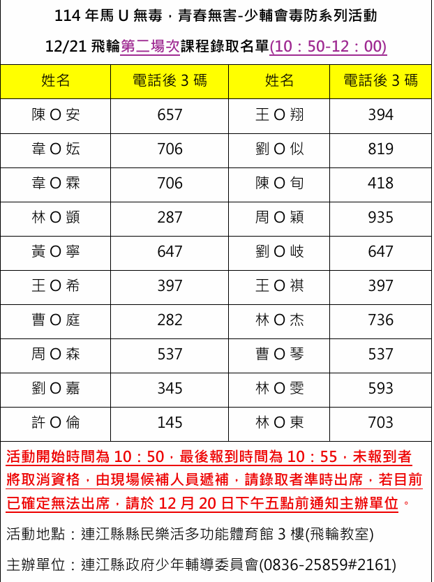 活動聯絡人:連江縣政府少年輔導委員會 林社工