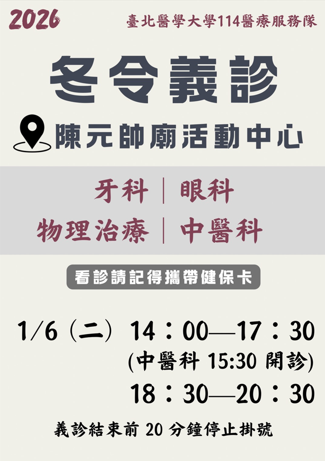 冬令義診-陳元帥廟活動中心