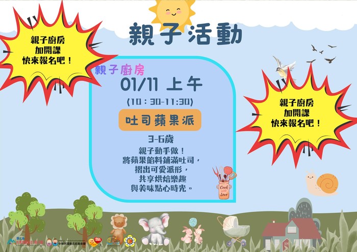 原訂 01/11(日)09:30–10:30 的【親子廚房-吐司蘋果派】,