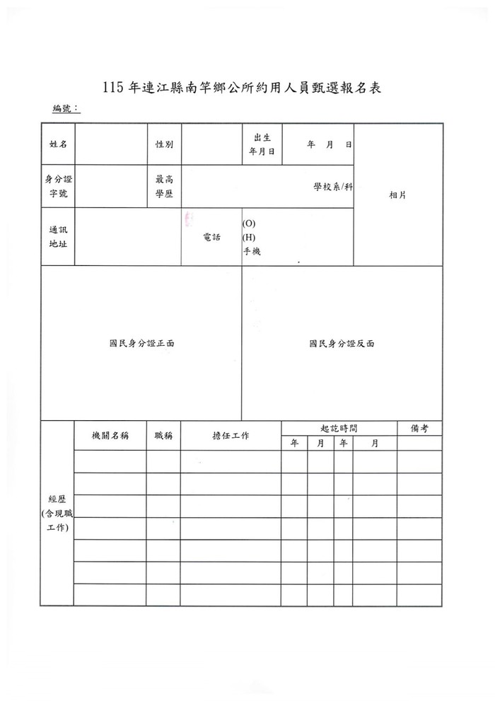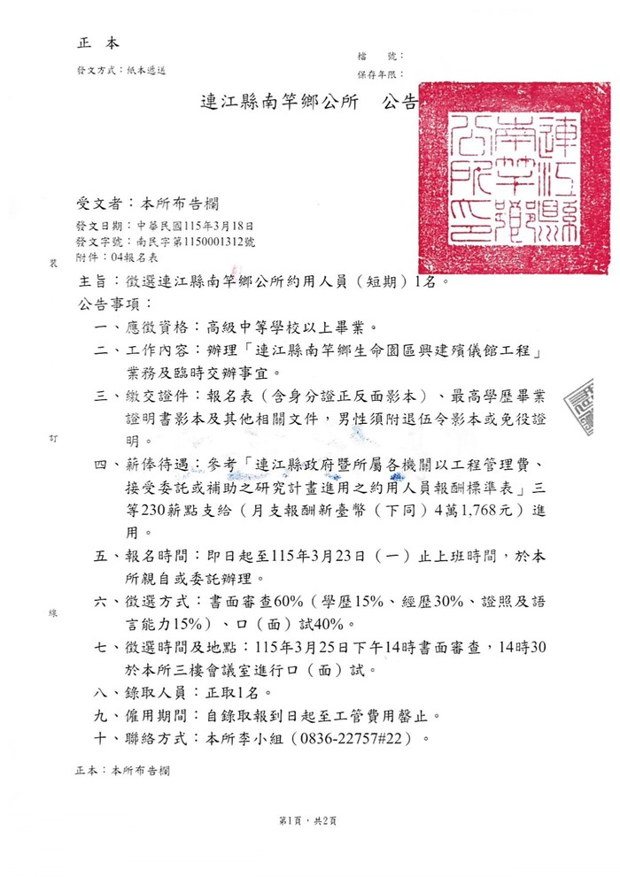 南竿鄉公所徵選約用人員1名