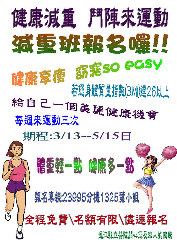 體重輕ㄧ點,健康多ㄧ點,縣立醫院減重班陪您一起減重 --閱讀人次 : 1881