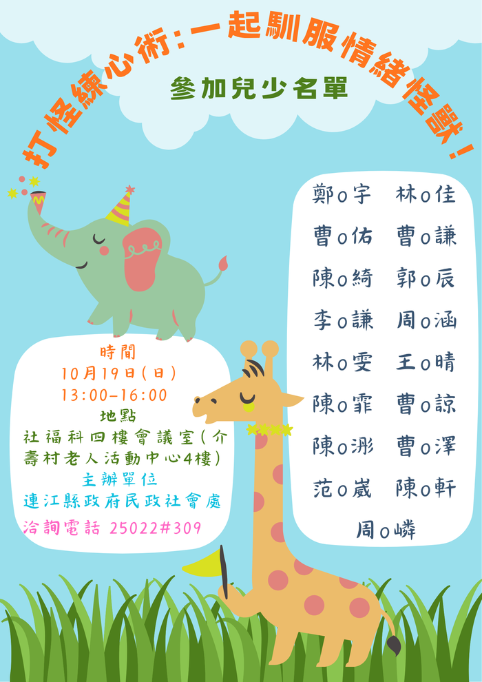 打怪練心術:一起馴服情緒怪獸!錄取名單