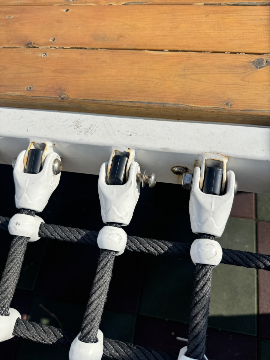 白馬王公園兒童遊樂設施遊具纜繩為防鬆螺絲,再次遭受不明人士破壞,造成安全隱患。