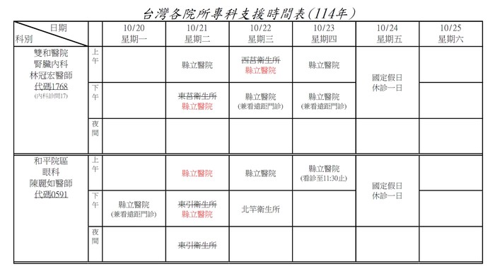 連江縣立醫院 電話:(0836)23991 傳真:(0836)22155 地址:20941連江縣南竿鄉復興村217號 E-Mail:service@matsuh.gov.tw 網址:https://www.matsuh.gov.tw/