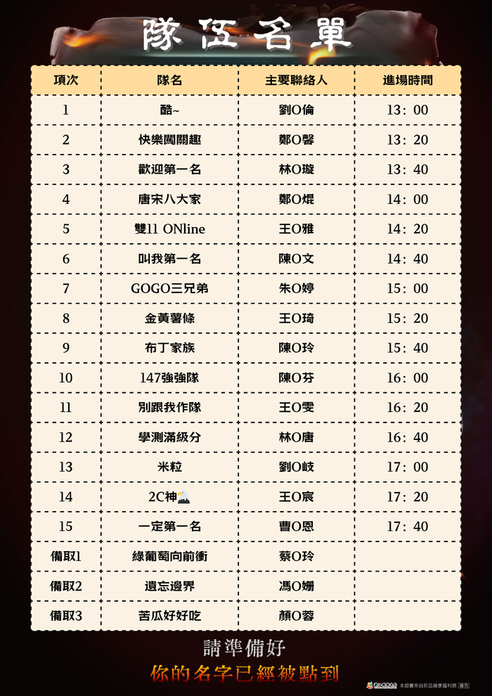 📌請正取及備取隊伍務必先詳閱下方注意事項!