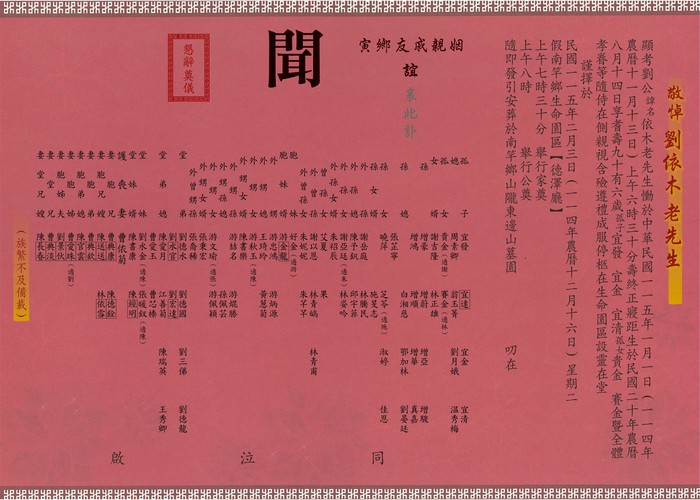 2月3日上午8時 假南竿鄉生命園區【德澤廳】舉行公奠