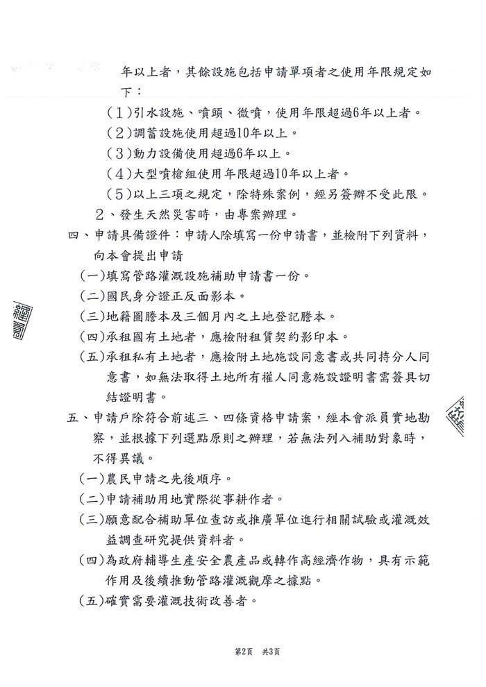 (一)填寫管路灌溉設施補助申請書一份。