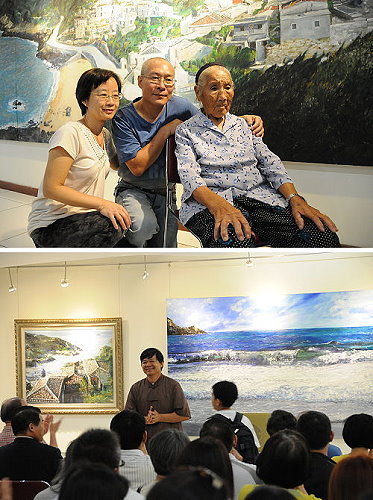 【本報訊】祝福、溫馨的氛圍瀰漫在首次在台灣辦個展的曹楷智馬祖風情油畫展,國內畫壇大師的肯定、鄉親祝福,以及一生默默付出的85歲母親到場參與,全場近200位人士充滿感動、驚艷。