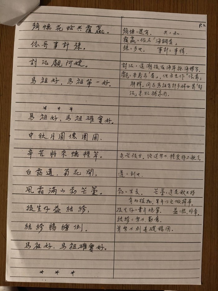 陳高志老師的離世令人猝不及防,馬祖失去這位對在地的文史和母語推動的長者,保存和整理高志老師遺世資料的任務更顯重要。這份創作的文件來自我與王建華校長的討論,應該是其與高志老師的好友蒐集而得的珍貴文件。獲得建華校長的允許,在此陸續的彙整謄錄高志老師的相關珍貴創作資料,以饗鄉親、使馬祖珍貴的文化得以傳承,若有鄉親願意分享高志老師的相關資訊,也請不吝告知。謝謝。