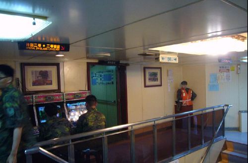 準備下船 看到候船室上頭的「歡迎光臨...」剩下「歡」和「臨」兩個字
