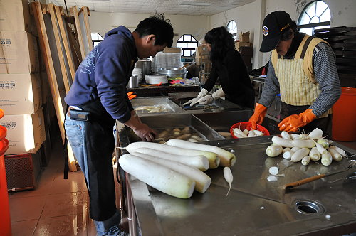 宏利公司去年首度利用本地產的白菜及蘿蔔,生產出口味特殊的「好冽」泡菜廣受好評,今年擴大與農會及農民的合作,除了繼續生產新鮮泡菜外,為了提升各類加工品的品質,專程委託台灣友人引進日韓的蘿蔔品種;其中專為泡菜製作的處男蘿蔔體型較小,而今年栽種面積較大的是日本種的大蘿蔔。加工廠指出,日本種的蘿蔔是首度在馬祖試種,目前收成的狀況看來是很適合馬祖推廣,這種品種用於蘿蔔乾加工是首選。